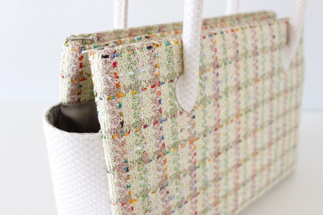 ぽってりとツイードらしい風合いで、綿、レーヨン素材で明るい色合いのため軽やかな雰囲気です。